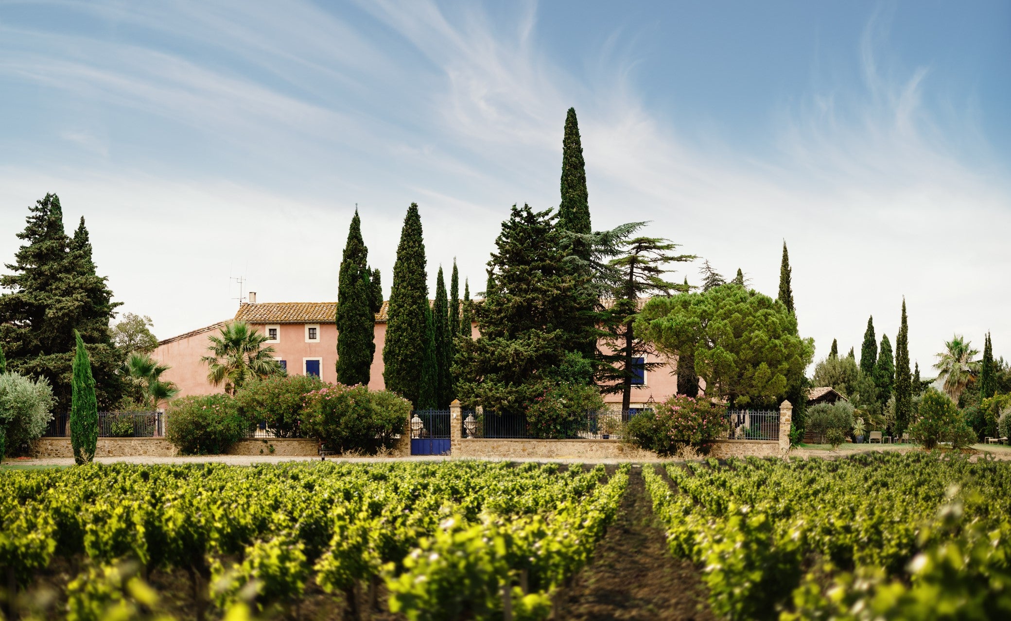 In the hollow of the Corbières, on the terroir of Fontfroide ("cold springs"), the Domaine de Cigalus benefits from the refreshing contributions of this unique environment. The soils sit on a layer of sandstone and are composed of highly draining sand, which complements the clay, which retains the water from the numerous resurgences around. This richness, in a semi-arid climate, must be controlled by short pruning and constant attention to the vigour of the vineyard. On the other hand, it allows great ampelographic freedom between the earliest and later grape varieties. On the 75 hectares of the estate, Gérard Bertrand has retained the former owner's bias for a heterogeneous choice of red (Merlot, Cabernet Franc and Cabernet Sauvignon, Caladoc, Syrah, Mourvèdre and Carignan) and white (Sauvignon, Chardonnay, Viognier), to produce exceptional, resolutely atypical wines.