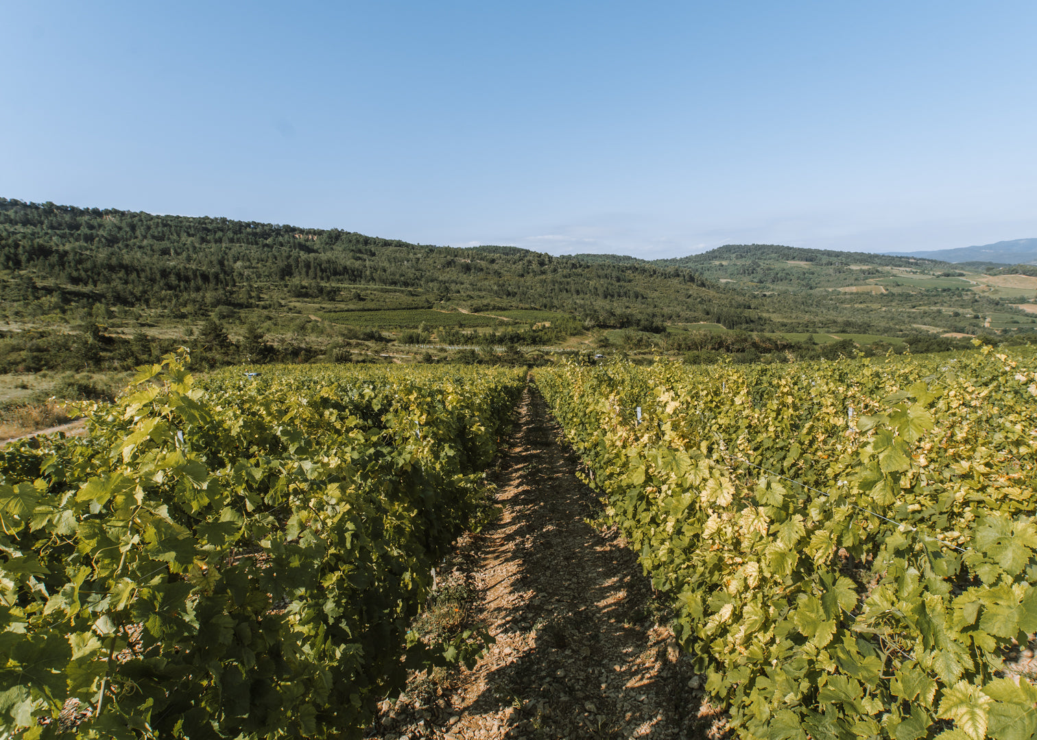 At the foot of the Pyrenees, the estate's vines reach a height of over 500 metres: it is one of the highest vineyards in the Upper Aude Valley and the whole of Languedoc. This situation accentuates the coolness of the climate, of oceanic type with a semi-continental tendency, unique in the region. Temperatures here are 2 to 3°C lower than those recorded on average in the Languedoc, while rainfall averages 900 mm per year (compared to 600 mm in Narbonne). The altitude also reinforces the thermal amplitude between summer days and nights, which allows a slow maturation of the grapes, preserves their acidity and guarantees the aromatic precision of the wines. The limestone cliff of Roquetaillade overlooks the estate. In the valley, the soil alternates clay-sand layers which form an ideal compromise in terms of water and nutrient retention for the vines. The higher plots bite into the cliff and its marine limestone component, which brings a salivating tactile dimension to the wines.